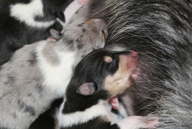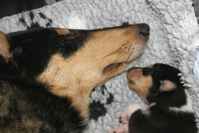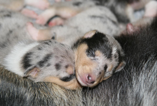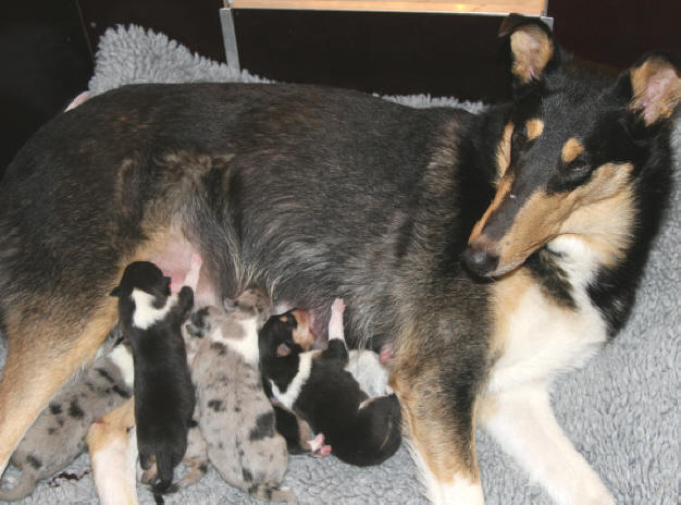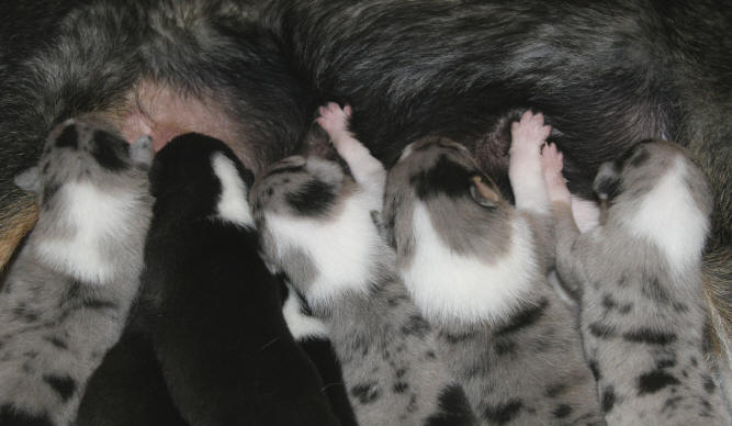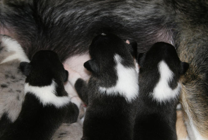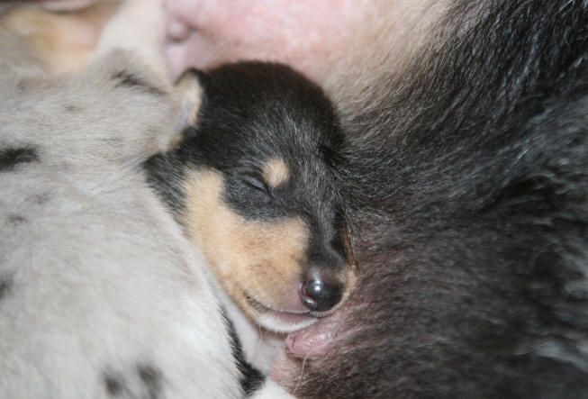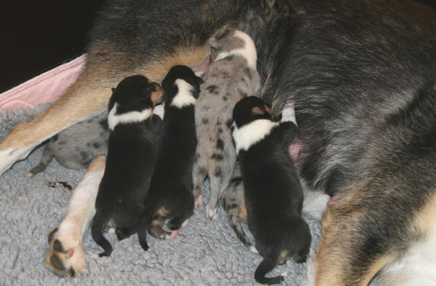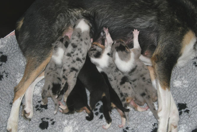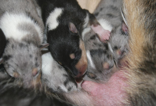 Mama "Jule" mit ihren Welpen 1 Tag alt An der leckeren Milchbar |