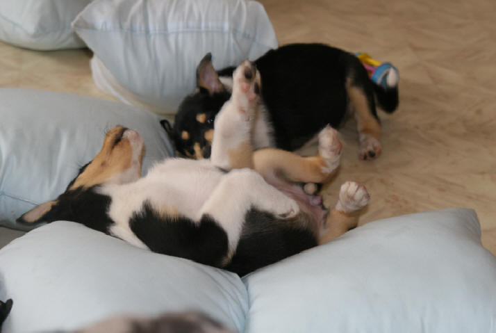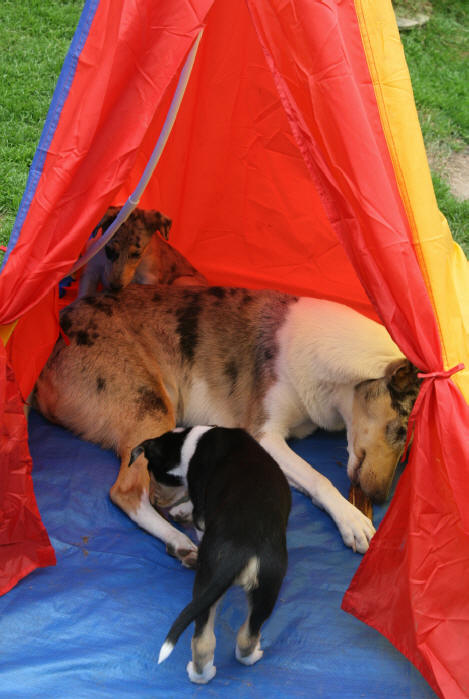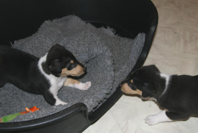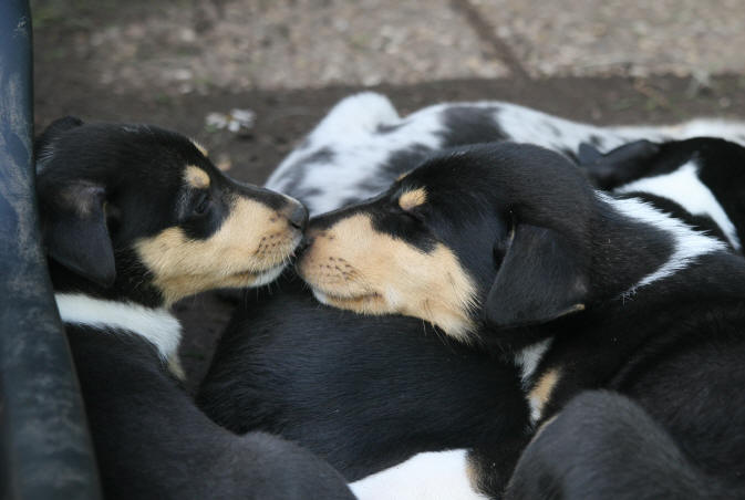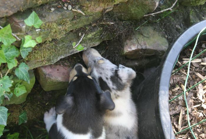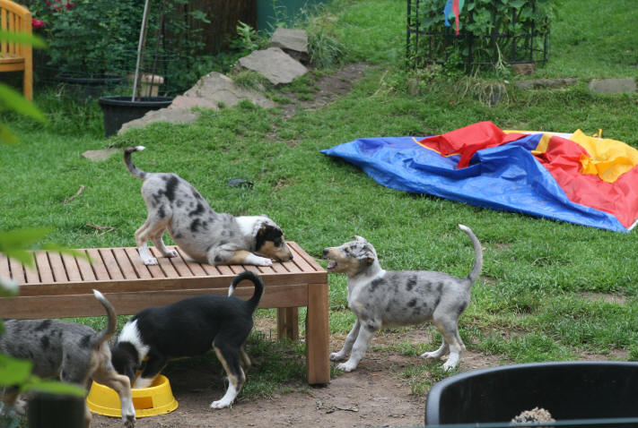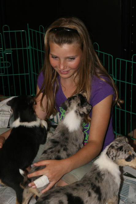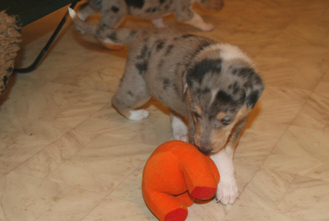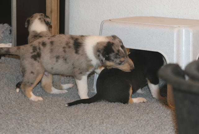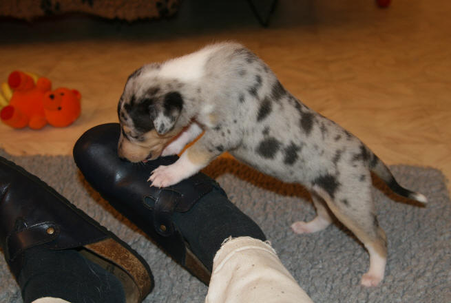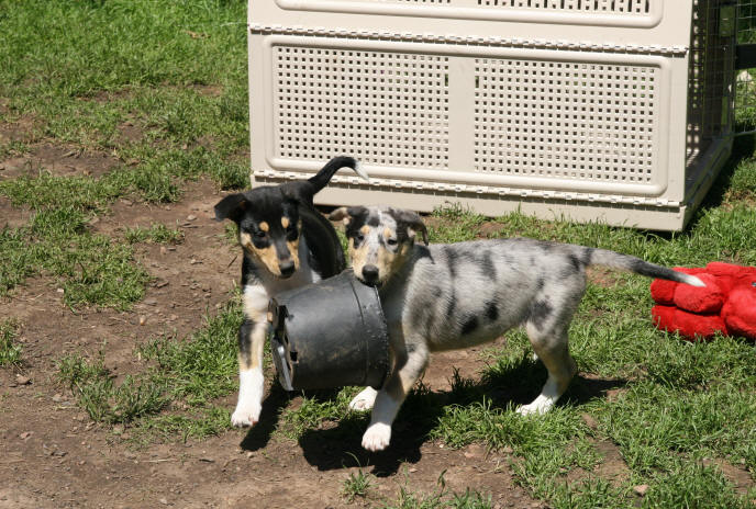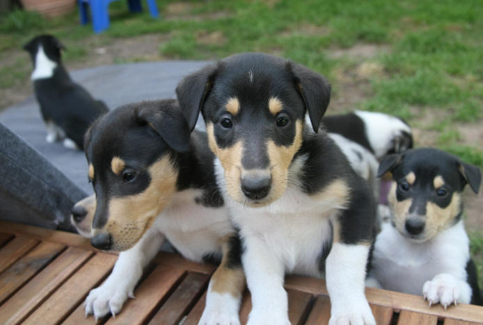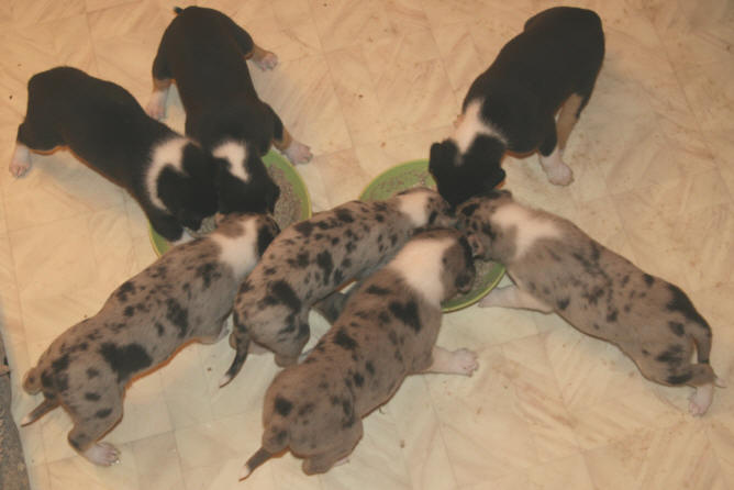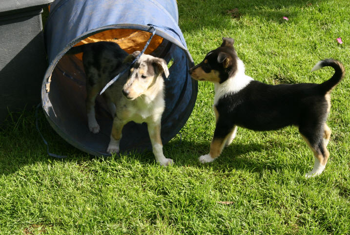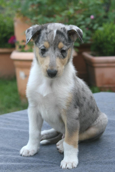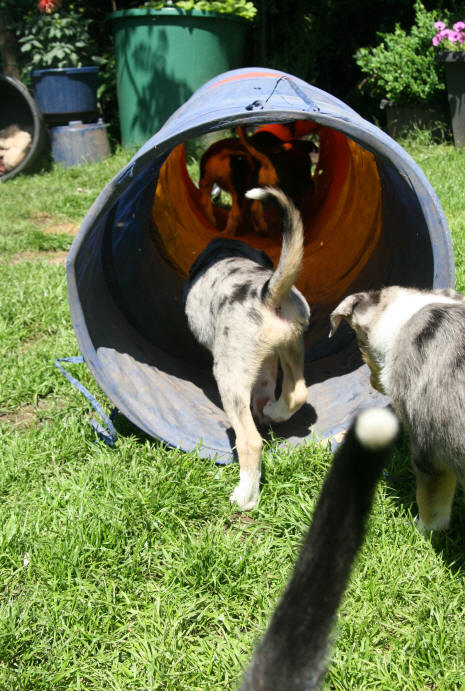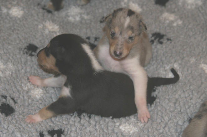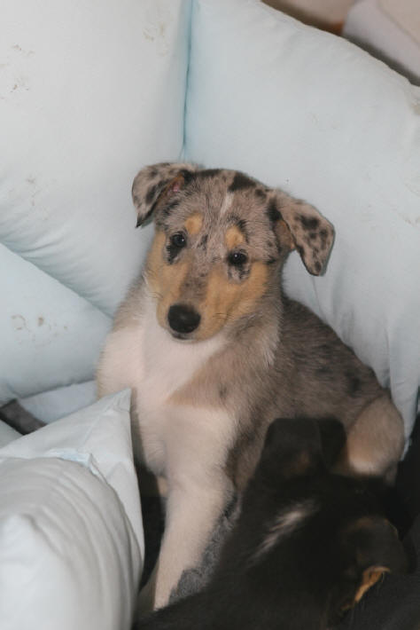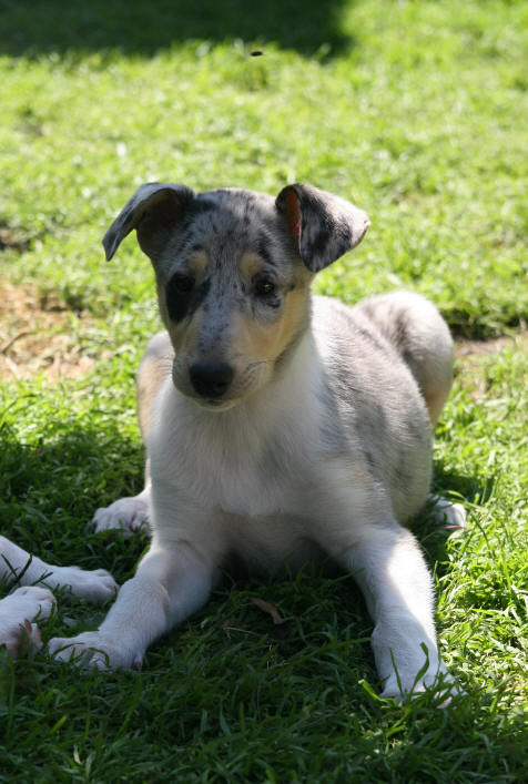 ( Chunky Monkey van Shaka's Royal Kraal x Ch. Rainybanks Summer Night ) Wurftag 26.04.2009 2 tricolour Rüden, 1 blue merle Rüde, 1 tricolour Hündin, 3 blue merle Hündinnen |