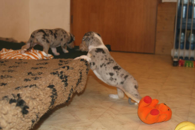 Die ersten Extramahlzeiten Das Schmeckt gut Könnt ihr mich sehen ? -Galaxy- Hier oben liegt doch oft die Mam -Gemstone- Die ersten Kletterübungen -Garden Party & Good Times- Auch der Schuh ist lecke -Garden Party- Spielzeug ist noch nicht so interessant -Gemstone- Georgia Geht es uns gut ! - Gemstone & Galaxy- -Gemstone, Galaxy, Gentlle Boy- Schnappschuß, drei blaue Ladies -Galaxy, Garden Party, Good Times- Abtauchen gilt nicht ! -Gemstone, Great Gentleman-