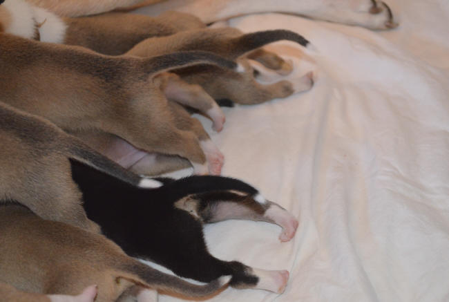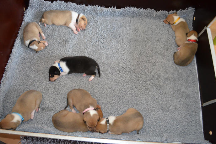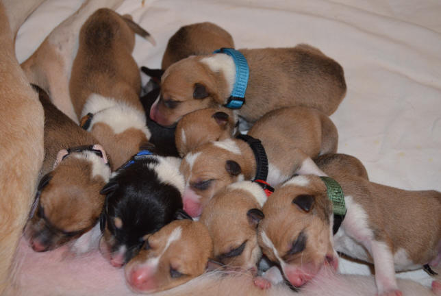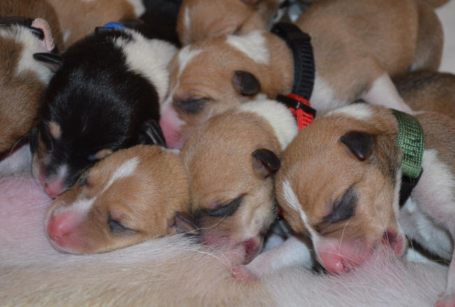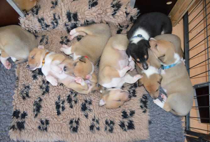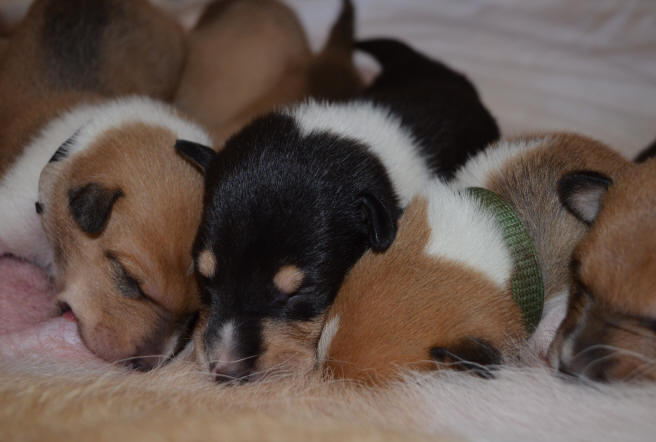 9 Welpen - 1 tricolour Rüde, 6 sable Rüden, 2 sable Hündinen