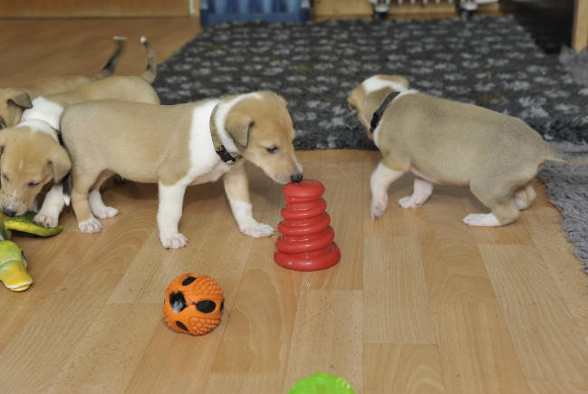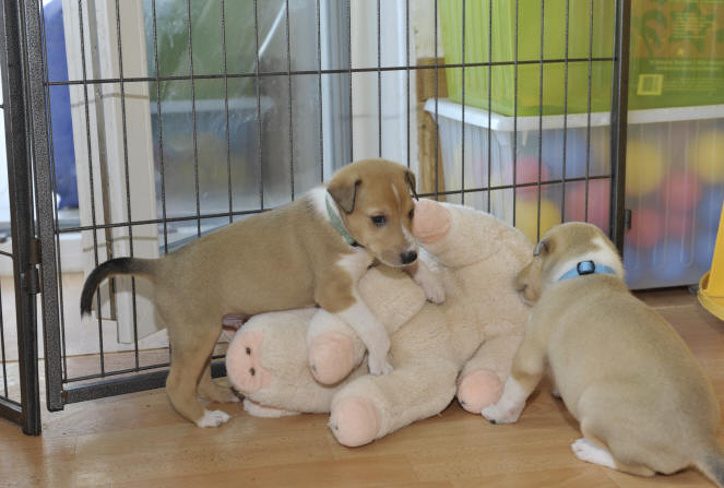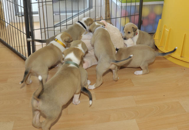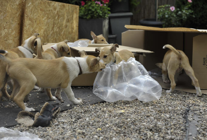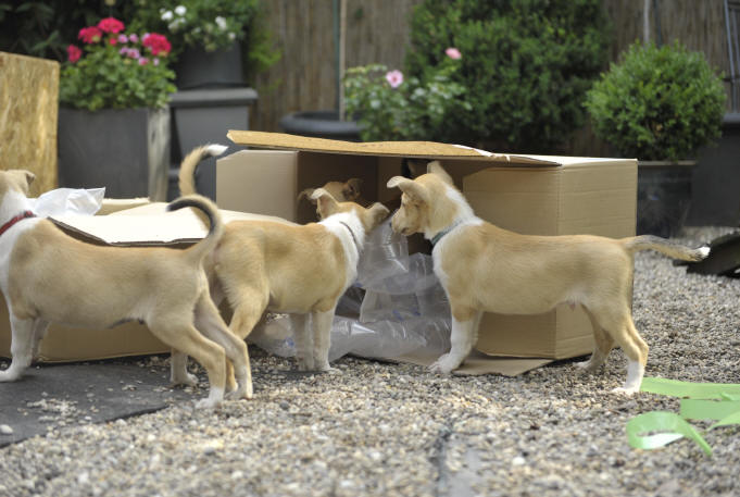 3 Wochen alt Die Welpen werden immer mobiler und verlassen heute zum ersten mal die Wurfkiste.