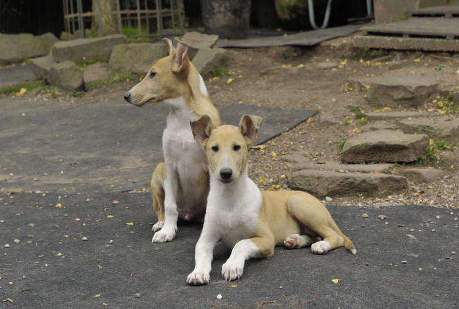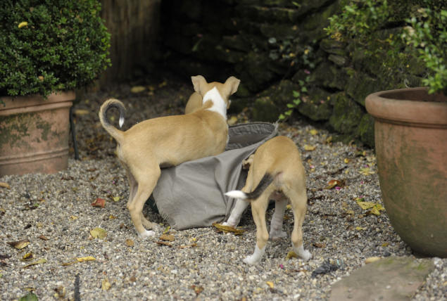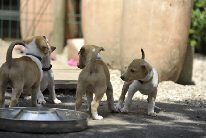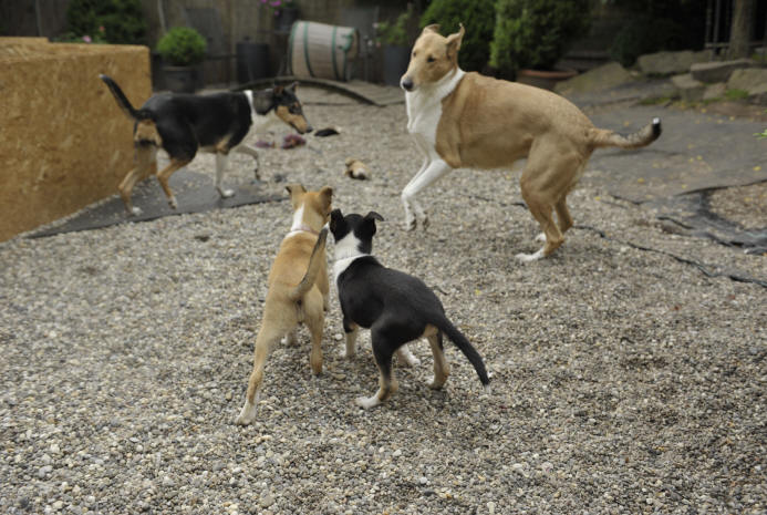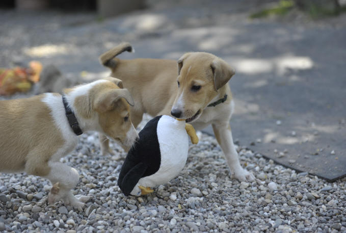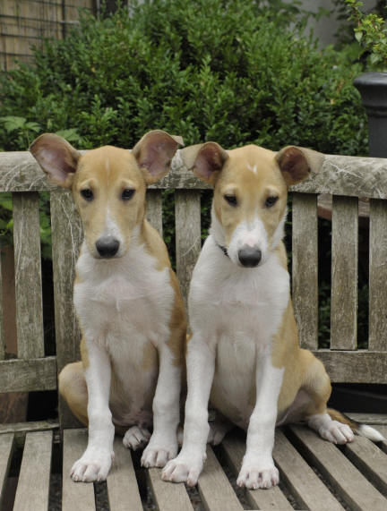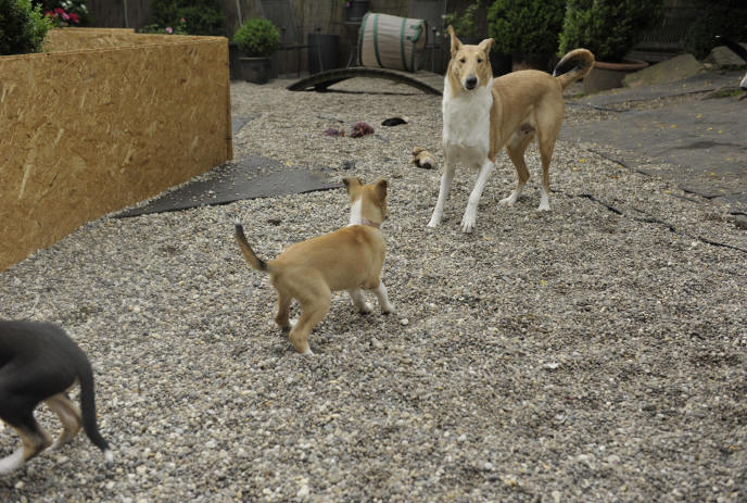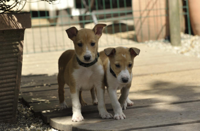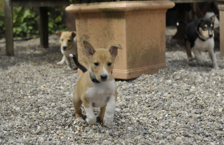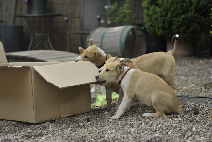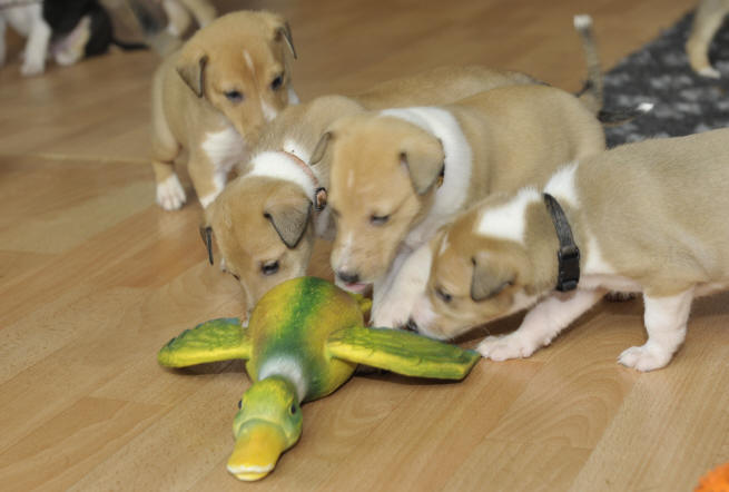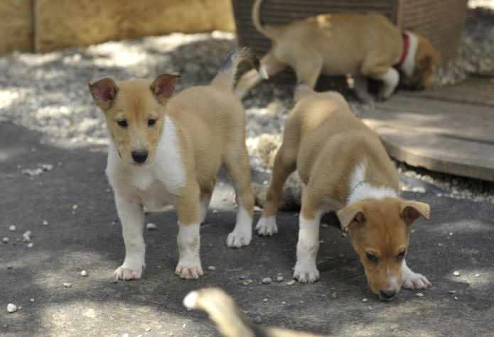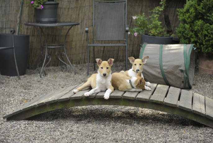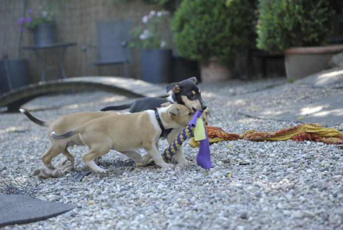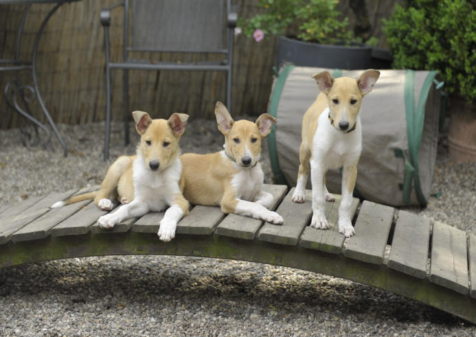 Rüden, 1 tricolour Rüde und 2 sable Hündinen.