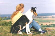 Standard-Nr. 196 Der Standard beschreibt den Kurzhaar-Collie als einen Hund mit fröhlichem Wesen ohne jegliche Nervosität oder Aggressivität, mit einer ausgewogenen Mischung an Gebrauchseigenschaften, Eleganz und Adel. Der Körper sollte etwas länger als hoch sein. Die Extremitäten gut gewinkelt und muskulös, für einen leichten mühelosen und raumgreifenden Schritt. Der Kopf sollte einem gut abgestumpften, sauber geschnittenem Keil mit glatten Außenlinien gleichen. Von der Seite gesehen verlaufen die Linien des Vorgesichts und Schädels parallel und werden durch einen leichten Stopp voneinander abgesetzt. Die Augen sollten mittelgroß und mandelförmig, von dunkler brauner Farbe, bei blue merle Hunden auch von blauer Farbe möglich, mit wachem Blick sein. Die Ohren sollten mäßig groß und –breit am Ansatz sein und werden in typischer Collieform halbaufrecht getragen, d.h. das untere 2/3 des Ohres steht aufrecht, das obere drittel kippt auf natürliche Weise nach vorne über. Der Gesichtsausdruck des Kurzhaar-Collies sollte „süß“ und freundlich sein. Es gibt den Kurzhaar-Collie in den drei Farbschlägen: zobelweiß, tricolour und blue merle, die jeweils die typischen weißen Collieabzeichen, wie weiße Halskrause und Brust zeigen. Das Haarkleid soll kurz und flach sein mit dichter Unterwolle und hartem Deckhaar. Größe und Gewicht des Kurzhaar-Collies liegen für Rüden bei 56 – 61 cm und 20 – 30 kg, für Hündinnen bei 51 – 56 cm und 18 – 25 kg. GeschichteDer Kurzhaar-Collie, englisch Smooth Collie , hat eine ebenso lange Geschichte wie der Langhaar-Collie. Im Gegensatz zum Langhaar-Collie hat sich der Kurzhaar-Collie in den letzten hundert Jahren nur wenig verändert. Früher wurde der Kurzhaar-Collie als Hütehund vor allem als Hof- und Treibhund eingesetzt. Heute ist er ein attraktiver Familien- und Begleithund. Wesen Der Kurzhaar-Collie ist ein intelligenter und unkomplizierter Hund von freundlichem, sensiblen und anhänglichem Wesen, der gerne mit seinem Menschen zusammenleben möchte. Seine geringe Neigung zur Nervosität oder Aggressivität machen ihn zum sozialverträglichen und zeitgemäßen Begleiter, der in der Haltung anspruchslos ist und keine großen Hundeerfahrungen voraussetzt. Erziehungsmaßnahmen müssen nur wenig wiederholt werden, da der Collie schnell versteht, was von ihm verlangt wird. Oft ließt er einem die Wünsche von den Augen ab, da er seinem Menschen gefallen will. Dennoch benötigt der Kurzhaar-Collie eine konsequent führende Hand mit einem ausgewogenem Maß an Herz und Verstand, unangebrachte Härte oder launischen Charakter steckt der Kurzhaar-Collie nur schwer weg und reagiert verunsichert, ausweichend und evtl. ängstlich. Der Kurzhaar-Collie braucht einen Besitzer, an den er sich anlehnen kann und der ihn liebevoll und konsequent leitet. So kann sich das Wesen des Kurzhaar-Collies erst richtig entfalten. Der Kurzhaar-Collie kein Hund für die Zwingerhaltung. Der Kurzhaar-Collie ist ein lebhafter, fröhlicher und bewegungsfreudiger Hund. Seine Energie lässt sich jedoch sehr gut lenken. Im Gegensatz zu anderen Hütehunden besitzt er ein gemäßigtes Temperament und benötigt keine tägliche aufwendige Arbeit um ausgelastet zu sein. Er zeigt auch keine große Neigung zum Wildern. Im Haus ist der Kurzhaar-Collie ruhig und unauffällig. Wachsam meldet er fremde Personen und Geräusche. Übermäßiges Kläffen sollte man jedoch früh unterbinden. Der Kurzhaar-Collie ist kein ausgesprochener Schutzhund, da er Menschen freundlich zugetan ist. Er versteht sich gut mit Kindern, ebenso mit anderen Hunden und Tieren. Sein Fell ist pflegeleicht. Während des Fellwechsels sollte man aber auch einen guten Staubsauger zur Hand haben. Der Kurzhaar-Collie ist in der Regel eine gesunde Rasse, die auch im Futter keine besonderen Ansprüche stellt.
