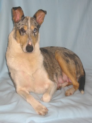 | Wesen / charakter | Quin ist unser Christkind geboren an Weihnachten 2003, in "Joys" letztem Wurf: Sie ist eine besonders liebe Hündin, sehr anhänglich und anlehnungsbedürftig an Frauchen. Immer aufmerksam und sehr folgsam. Sehr verschmust. Ihre Spezialität sind Luftsprünge - mit allen 4 Pfoten gleichzeitig - bis an Frauchens Nasenspitze: Quin is a puppie out